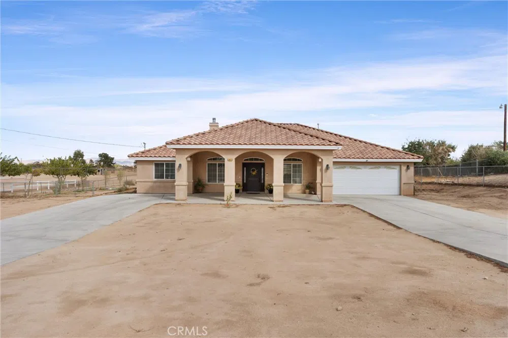 Ranch Style Home located in heart of Hesperia! Serene neighborhood featuring this exquisite home inviting you to experience a lifestyle of tranquility and comfort. Situated on a generous lot spanning 1.21 acres of flat usable land (52,708Sqft lot). This gorgeous property offers endless opportunities for outdoor enjoyment and expansion. (Pool, ADU / Guest House / 2nd Unit / RV Garage, Entertainers backyard, Kids massive playground etc.) Spanish tile roof with a combination of smooth stucco throughout exterior adding extra elegance appeal. Step into this home and enjoy the high ceilings and open flowing layout, gorgeous tile floor throughout, formal living room / dinning room. Oversized remodeled kitchen with granite counter tops and island overseeing the family room. Enjoy the holidays with your loved ones watching family movies and staying warm with the gas starter fire place. Principal bedroom separated from all other bedrooms, providing you with extra indoor privacy. Spacious bedrooms, all recently painted with new laminate floors throughout. Separate laundry room and multiple dual pane windows throughout the house. New HVAC (Central AC and Heating) just installed in 2024. All Interior has been freshly painted. Attached two car garage with extra storage space, two separate driveways, Multiple fruit trees planted with irrigation drip system. The expansive backyard beckons with endless possibilities. Located in the desirable neighborhood of Hesperia, this home offers the perfect combination of suburban tranquility with convenient access to amenities. Enjoy amazing mountain views, nearby parks, shopping centers, dining options, and easy access to major transportation routes. A1 ZONING (Limited Agricultural) which allows large animals in the property and other sources of livestock keeping, equestrian. This property offers massive opportunities do not miss out! Call for your private showing today!.