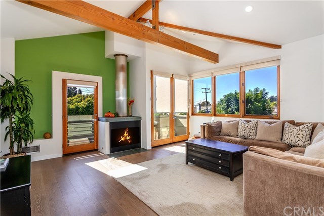 Perched high on the hill in Golden Hills, merely steps from Hermosa Beach, stands this stunning contemporary beach home. Remodeled in 2018 with no expense spared, this home is completely move in ready! As you enter on the main level, high ceilings and beautiful hardwood floors, set the tone for this incredible home. Two bedrooms on the first floor share one full bathroom featuring Cesarstone countertops and beautiful gray hued tiles. The bedroom in the rear of the home, boasts beautiful built-ins and a massive wall to wall closet. French doors lead you to the backyard, completely lined with beautiful mature Podocarpus trees providing the utmost of privacy. Head up the stairs to the great room and master suite, where you are welcomed by vaulted ceilings with beautiful exposed wood beams. From the second level, you are able to enjoy incredible panoramic views all the way from Downtown Los Angeles to the Santa Monica Mountains, and even peek-a-boo ocean views! A Juliette balcony and large windows allow incredible natural light and refreshing ocean breezes to flow throughout. The beautiful open kitchen features sleek wood cabinets, travertine countertops, and all new stainless steel appliances. Finally, as you enter the master suite, you are greeted by an impressive walk-in closet with custom built-ins. French doors lead you to a large deck with incredible city views, and a huge master bathroom featuring a luxurious jacuzzi tub and detached marble tile shower.
