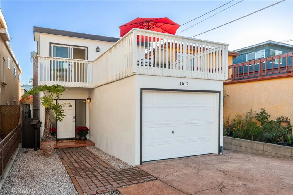 Located just around the corner from Jefferson, an award-winning elementary school, this beautifully updated home combines charm, comfort, and an unbeatable location. All bedrooms are conveniently situated on the second level, where you'll find brand-new carpeting and a bonus office room that opens to a spacious deck—perfect for hosting barbecues or enjoying al fresco dinners. Downstairs, gleaming wood floors and a cozy gas fireplace create a warm and inviting living space, while fresh paint inside and out enhances the home’s appeal. The large backyard, featuring slate flooring and plenty of privacy, is ideal for gardening or relaxing outdoors. Additional features include a one-car garage with space for two more vehicles in the driveway, a dedicated laundry room, and proximity to Our Lady of Guadalupe church and school. With its prime location, you can easily walk to the sand, parks, restaurants, and shops, making this home the perfect blend of convenience and beach living. Don’t miss this opportunity to enjoy the best of the neighborhood!