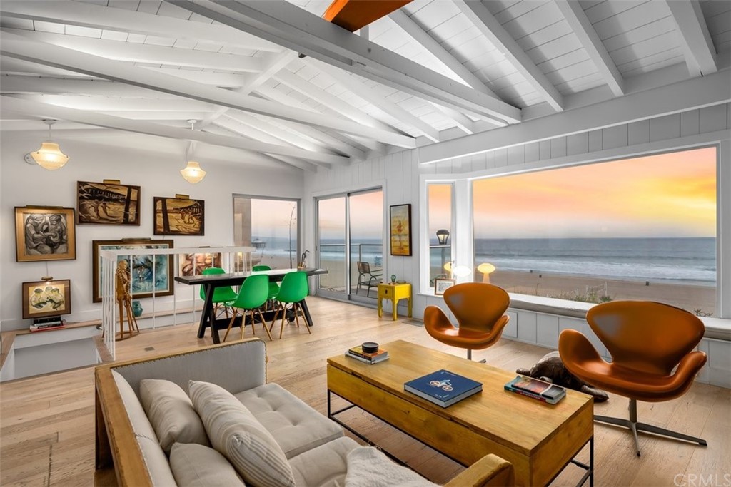 That dreamy, quintessential retreat by the shoreline is a reality discovered at 1908 The Strand in Manhattan Beach. Taken to the studs and remodeled while maintaining its original beach cottage charm, this 2 bedroom home has a large beach level room with a 3/4 bath that could convert to a 3rd bedroom, if desired. If front-and-center beachfront living with sweeping views of The Strand and the Pacific Ocean aren’t enough, this property offers very rare, highly coveted, proper parking spaces for 6 vehicles on site! Secure, coded entry gates open immediately to an ocean view just past the large, private sun-drenched courtyard that the home envelopes. A floor-to-ceiling glass and steel pivot entryway door welcomes you to open concept living and entertaining areas perched high above The Strand that enjoy sweeping views of the pier to the South and endless ocean views. Vaulted, open beam ceilings lend to the original charm while adding height, light and depth to the cottage’s footprint. Bleached wood floors, a white brick fireplace, and farmhouse style design accents throughout capture and preserve that treasured vintage Southern California beach vibe. Upgraded amenities and state-of-the-art appliances and in-home technology bring this classic cottage future-forward. Life along the world-famous Strand is what California dreamin’ is made of; exercise for miles along the Marvin Braude bike trail that stretches for 21 scenic miles from Palos Verdes to the Pacific Palisades, catch waves all day right in front of your idyllic beach bungalow, spike, set and dig beach volleyball to your heart’s content, or just watch the dolphins play in the morning sun from your front row seat. Park the cars and bike or stroll to nearby dining and shopping options - beach life is the best life!