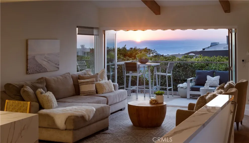Experience coastal luxury at its finest in this meticulously reimagined Laguna Beach residence. Positioned to capture breathtaking panoramic views of the Pacific Ocean, Catalina Island, and San Clemente Island, this 3 bedroom, 2.5 bathroom home perfectly balances modern industrial design with high-end sophistication. Every inch of this property has been thoughtfully upgraded, from the striking new steel roof and Mulholland steel fencing to the custom walnut doors and wide-plank white oak hardwoods that flow throughout the upper level. The heart of the home resides upstairs in the light-filled ocean view great room, which features a marble-mantel gas fireplace and an industrial steel ceiling fan. Indoor-outdoor living is perfected here via a wall-to-wall accordion sliding door that opens completely to a newer glass-enclosed upstairs patio, creating a seamless transition for entertaining against the backdrop of world-class sunsets. The adjacent chef’s kitchen is a showpiece of functional design, anchored by stunning porcelain waterfall countertops and backsplash, soft-close craftsman cabinetry, and a full suite of premium LG appliances. The thoughtful layout places the primary suite on the upper level for maximum privacy and impact. This sanctuary boasts a custom walk-in California Closet and a spa-like bathroom featuring a floor-to-ceiling glass-enclosed wet room with a soaking tub and walk-in shower, floating dual vanities, and the luxury of heated tile floors. The lower level houses the two spacious secondary bedrooms, providing a quiet and separate space for guests or family. These bedrooms share a well-appointed hall bathroom featuring a dual-sink vanity, floating cabinetry, and premium Italian wave tile. For added convenience, the home includes a dedicated interior laundry room featuring a side-by-side washer and dryer setup. Beyond the aesthetic upgrades, the home offers peace of mind with modern infrastructure, including an upgraded AC condenser, newer radiant forced-air ducting, a tankless water. Ideally situated just steps from the amenities of Moulton Meadows Park—a local favorite for its renowned mountain biking and hiking trails, dog park, and sports courts—this residence places the best of Laguna at your doorstep. Perched just up the hill from the pristine sands of Woods Cove and Victoria Beach, the home offers an unparalleled turn-key lifestyle in one of Southern California's most coveted coastal enclaves.