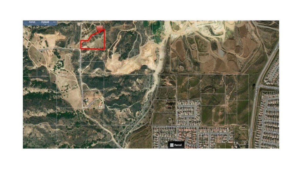 This sale includes two lots, APN 394110006-4 & 39411008-6 for a gross area of 5 acres. Pad has excellent views of the valley and surrounding mountainous landscape. Located between Alberhill Ranch and Horse Thief Canyon, the property also backs up to the Alberhill Villages planned project which is projected to include an elementary school, housing developments, EVMWD supplied water, business parks and more. View the supplements for more information on the Alberhill Villages specific plan. Plans to extend Lincoln St and Running Deer St are approved and should create further paved access to the property in the near future. Neighboring 5 acres are also for sale.
