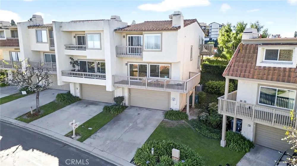 Located within The Hilltop community, this updated corner-unit home at 25 Hilltop Circle offers 2 bedrooms and 3 bathrooms. Fully remodeled with modern taste approximately two years ago, the residence is move-in ready and filled with natural light that frames city and ocean views. The main level features an open living space designed for both comfort and flow.The kitchen has been updated with quartz countertops and clean, modern finishes, opening directly to the dining area for easy entertaining. Outdoor living includes a private balcony along with a rear patio, each offering inviting spaces for morning coffee or evening downtime while enjoying the surroundings. The second level is dedicated to the bedrooms and includes a den suitable for conversion into a third bedroom or a home office. A washer and dryer are conveniently located on this floor. Additional highlights include dual-pane windows, a 2-car garage, ample guest parking, and thoughtful upgrades throughout. The primary suite offers a spacious bathroom layout complemented by beautiful views. Community amenities with ample visitors parking spaces and a private pool, tennis courts, and landscaped green walkways.