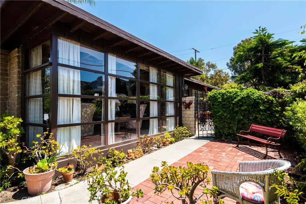 Presenting a special residence reminiscent of years gone by. This authentic adobe bungalow is nestled on a leafy corner lot in the tree section and exudes hidden charm. Offering three bedrooms and two baths in 1299 square feet on a 4480 square foot lot, this original mid-century cottage was quite literally built by hand, including the beams, wallboards, and cabinets. Cozy and beloved, this family home boasts the original wood-beam ceilings, barn doors, hardwood and tile flooring, and a private patio covered in dappled sunshine through mature trees. The welcoming living room’s wall of windows lets in plentiful natural light, while a brick fireplace grounds the space and makes for cozy evenings. A long hallway leads to each room in the house, including a genuine 1950s kitchen, complete with the original sink, a small gas range and a glass patio door, to a full bath, sunny primary bedroom with French doors leading to the patio, and an additional bedroom and attached bath. An inviting library/den offers sliding glass doors to the covered courtyard and could be used as a private office. If location is everything, this is it! Close to Manhattan Village, the Greenbelt, and local shopping and dining, this darling home on the corner of Pine and Marine is situated to make life easy. A nod to simpler times, this residence is a gem in the center of Manhattan Beach, and the perfect place to call your own.