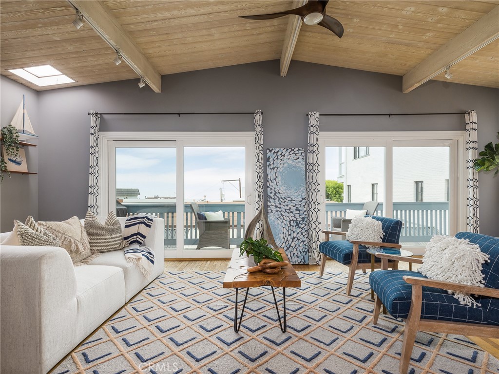 Location, convenience, and comfort - this magnificent property has it all! Nestled in the desirable Manhattan Beach Sand Section, this updated 3-bedroom, 2-bathroom home boasts breathtaking ocean views, a 3-car garage, and ample parking for up to 5 cars. The seamless open floor plan offers just-refinished hardwood flooring, a modern kitchen equipped with updated appliances, and a dining area with space for a table for 8. The inviting living room spills onto a balcony complete with a BBQ, perfect for enjoying the stunning ocean vistas. The home also features a water softener, washer/dryer, dishwasher, and bike racks in the garage. The primary suite and two generously sized bedrooms provide ample space for family and guests, while the large lower-level den/living room offers flexibility for use as an office or game room. As you enter the home, you'll be greeted by a grand stained glass window showcasing the iconic Manhattan Beach Pier. The outdoor space features a rare turfed backyard, perfect for a furry friend. Enjoy easy beach access just two blocks away at Bruce's Beach or take a stroll to the highly-rated Grandview Elementary School, which is only a block away. This turnkey home is an exceptional opportunity to live in one of the most coveted locations in Manhattan Beach, don't miss out!