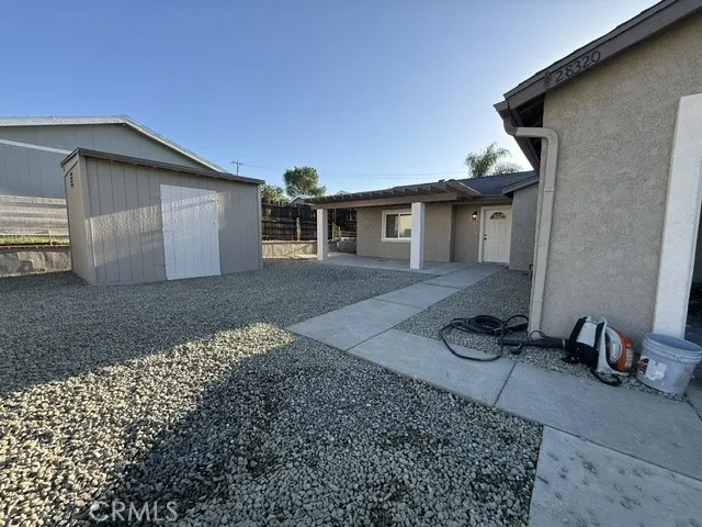 Welcome to 28320 Oregon Place, a beautifully refreshed single-story home tucked into an established Menifee neighborhood. This move-in-ready property offers a bright, open layout with thoughtful updates throughout, a perfect for comfortable everyday living and easy entertaining. Inside, you’ll find fresh interior finishes, recessed lighting, and newer wood-look flooring that flows seamlessly through the main living spaces. The updated kitchen features crisp white cabinetry, quartz-style countertops, stainless steel appliances, and a modern black faucet, opening effortlessly to the dining area and living room for a spacious, connected feel. Large windows and sliding glass doors fill the home with natural light. The living room offers generous space with a cozy fireplace, while ceiling fans throughout enhance comfort year-round. Bedrooms are well-sized, and the layout is both functional and inviting. Step outside to a low-maintenance backyard with fresh gravel landscaping, a covered patio with pergola, and a detached storage shed—ideal for relaxing, entertaining, or creating your own outdoor retreat. The private yard offers plenty of usable space without the upkeep. Conveniently located near shopping, dining, schools, and commuter routes, this home checks all the boxes for buyers looking for.