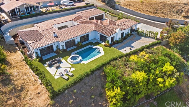 Custom finished 2020 new construction, Spanish style home, in the Miraleste Hills. A private road leads you to the motor court and driveway that can easily accommodate 8+ cars, not including the 3-car garage. The single-story floor plan is perfect for entertaining and features multiple areas to enjoy indoor and outdoor living. The kitchen boasts two large islands and opens up to the family room, overlooking stunning harbor, city, coastline and ocean views. The home is built around a large central courtyard with a fireplace and string lights that can be accessed from both sides of the home. An expansive living and dining area opens up to the large flat backyard with a pool & spa, artificial turf, and two separate sitting areas, all overlooking panoramic, unobstructed views. An extra-large master bedroom suite features a sitting area, bedroom, and master bath with two of everything (two closets, two vanities, and two water closets). A junior master suite with an attached bath & walk-in closet, along with two additional guest bedrooms, attached by a jack-and-jill bath, complete the rest of the bedrooms. Off the garage, you’ll find a large laundry room and an office. This home has it all: ample living space, large flat lot, incredible views, excellent floor plan, and the best part, all on one level. Other features include wood floors throughout, A/C, 3 fireplaces, an overside pantry with coffee bar, wood beams, coffered ceilings, award-winning school district, and much more.