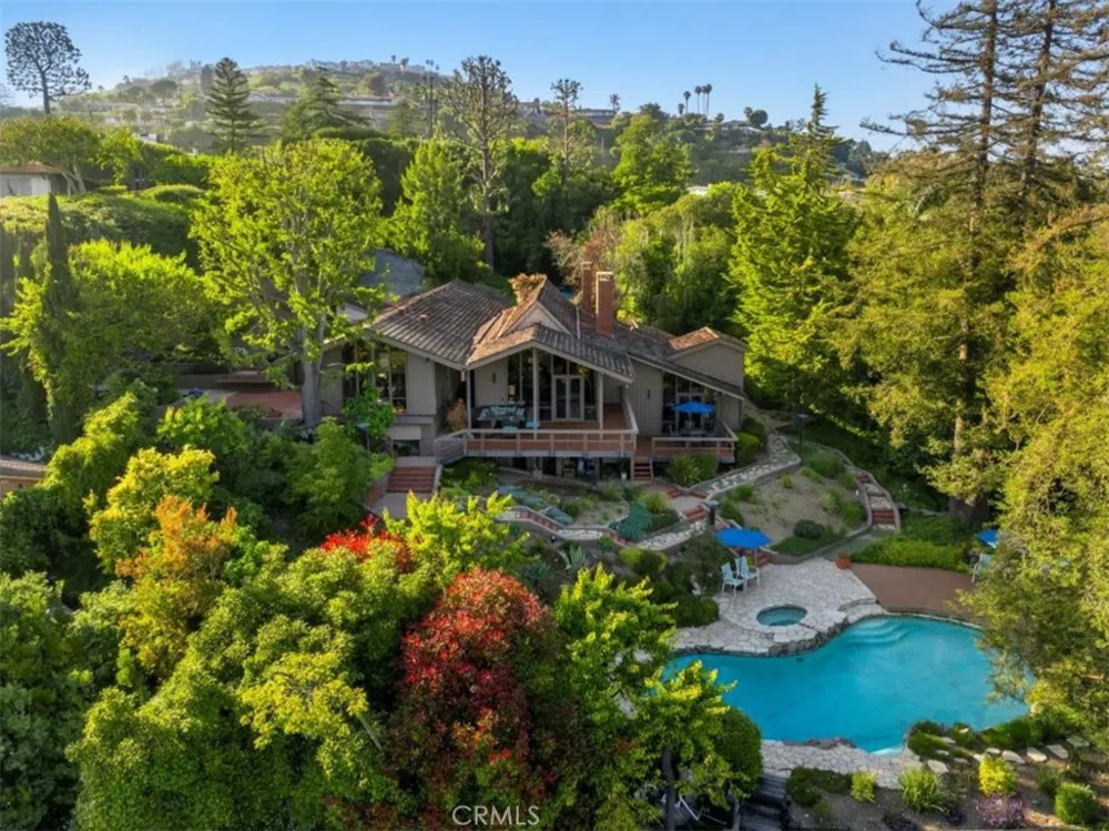 Designed by architect Paul Wuesthoff, this Mid-Century Modern retreat feels like your own private mountain resort. Nestled into an acre of very usable land, the design and layout will impress the most discerning Midmod enthusiasts, while the breathtaking views from the harbor to Catalina will have everyone else amazed. As you open the gorgeous custom front door, you are taken back into a time when architectural design was unique and artistic. The dramatic entry leads to a library with wall-to-wall built-ins and a private nook, as well as the Great Room, featuring cathedral ceilings and floor-to-ceiling windows, and an attached deck that gives you the best of indoor/outdoor living. The dining room enjoys the same panoramic views and connects to the large, refreshed kitchen with quartz countertops, a Zellige Crema tile backsplash, and recessed lighting. The Primary Suite has a newly remodeled bathroom with limestone floors, Isola Capri tile, Kohler fixtures, West Elm hardware, a walk-in shower, and a freestanding tub. There is a spacious walk-in closet and another large closet, making the battles of closet space a thing of the past. The primary bedroom has raised ceilings and French doors that open to another private deck that would be amazing for morning coffee or yoga (or both). On the lower level is a large lounge/den with a fireplace and wet bar that is perfect for when you want more space for your guests. This level has the other three bedrooms and provides an option to open two into one large room. The second bathroom has been completely remodeled with limestone flooring, stunning Zellige Perla tile, Kohler fixtures, and West Elm Hardware to keep the Midmod feel to the house. The exterior is as stunning as the rest of the property, with an expansive flat side yard, large enough to host a wedding (or party of your choice). As you go down to the pool and spa, your guests can take advantage of the changing room, separate bathroom, and outdoor shower that are perfect for the pool-goers. As you soak in the views and take in the privacy, you may get lost in your original feeling of being at a mountain retreat. However, this mountain retreat is within walking distance to award-winning Mira Catalina Elementary and the new UCLA South Bay campus, and just a short drive to parks, beaches, and nature trails. Not many acre-sized properties come on the market in Los Angeles, and very few have the architectural excellence of this Mid-Century Modern gem.