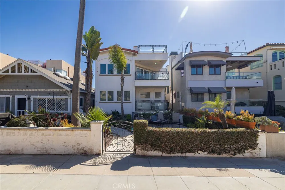 Just four homes up from the sandy shores of Hermosa Beach, this stunning multi-level townhome boasts a wealth of indoor and outdoor living spaces, perfect for beachside relaxation. The lowest level features a primary bedroom with patio access and ensuite bathroom, laundry area, and a bonus living space complete with a bar. Ideal for entertaining or unwinding after a day at the beach. The second level offers a second primary bedroom with ensuite bath, a third bedroom and an additional bathroom. The third level is the heart of the home, with high ceilings and a sky light, a bright and airy living room and dining area that flows into the kitchen, complemented by an ocean-view balcony and a half bath. Head up the staircase to a sprawling rooftop deck with sand and ocean views. Whether you're looking to entertain, dine al fresco, or simply take in the views, this space is perfect for both laid-back living and hosting guests.This property also includes an elevator, a 2-car garage, air conditioning, 3 fireplaces, plus a private landscaped walk street patio that connects with the walk-street path leading directly to the sand. Located just a stone’s throw from the beach, this home offers unparalleled access to Hermosa Beach’s vibrant coastal lifestyle. Whether you enjoy morning walks along the shore, evening sunsets, or the abundance of nearby shops, restaurants, and entertainment, this townhome puts you in the heart of it all.