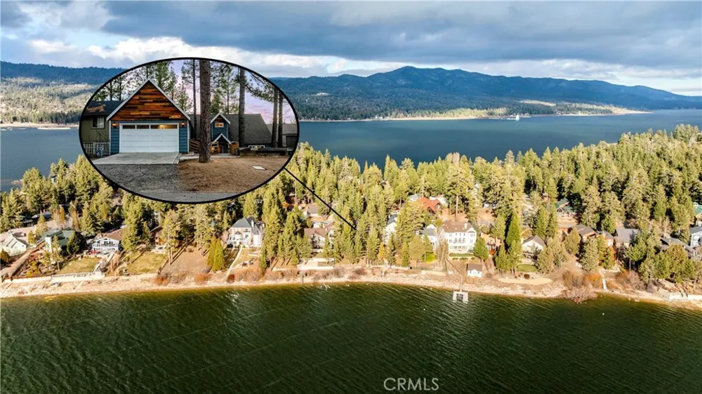 Rare Gilner Point Gem – Expansive 4BR/2BA Lakeside Retreat! Discover the ultimate mountain escape and privacy on Lake Drive - perfectly located with 60 feet of prime lake frontage in the exclusive Gilner Point peninsula community of Big Bear Lake. This 2,170 SF home blends classic 1950s lakefront charm on a large wooded lot featuring 4 bedrooms and 2 bathrooms - making it a premier choice for a multi-family getaway and a highly desirable income property. It is time for a new owner to create your own lasting memories. Step inside to a welcoming living space centered around a warm fireplace, perfect for chilly mountain evenings and large windows frame the lake views. The primary bedroom, conveniently located on the main level, offers a serene sanctuary overlooking the lake. Upstairs, you’ll find two additional bedrooms and another guest bathroom, each exuding its own unique charm and boasting lake views. Step outside on the expansive sprawling outdoor deck surrounded by mature pine trees overlooking the lake with ample space for outdoor entertaining - relax, dine and enjoy the natural beauty all around you. The three-story design includes a 520 SF lower floor with room for a ping pong and pool table with additional storage and direct access to a second deck in the wooded backyard. Lastly, a large 2-car attached garage for year-round convenience. This lakefront retreat is ready to be enjoyed by a new owner on one of Big Bear Lake's most sought after stretches of shoreline. Whether you're seeking a tranquil escape - enjoy summer days on the lake or an outdoor adventure hiking the mountains and winter at the nearby ski slopes - this property puts you in the heart of it all. Just a short drive to the shops, dining, and festivals of Big Bear Village, this is your chance to own a piece of Southern California’s favorite four-season destination. Whether you're seeking a tranquil escape or an outdoor adventure, this exceptional property offers the perfect blend of lakefront serenity, and outdoor recreation.