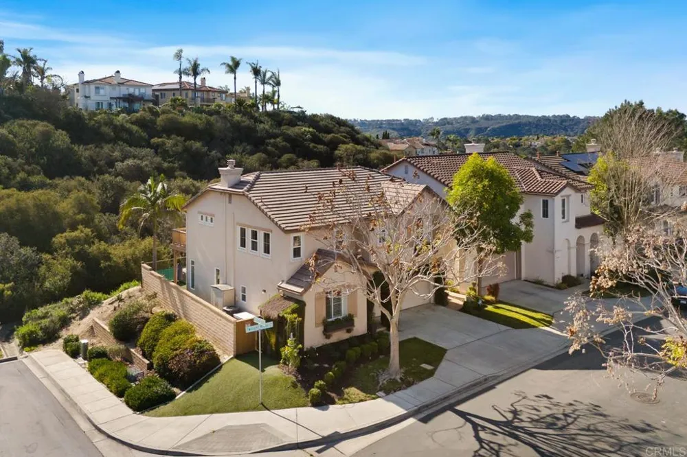 Nestled within the desirable gated Greenbrier community of Torrey Hills, this immaculately maintained residence offers a rare blend of privacy, comfort, and thoughtful upgrades. The 4-bedroom, 3-bathroom home spans 2,106 square feet and sits on a premium corner lot with a serene canyon outlook. Just footsteps from the front door lies the Carmel Valley Preserve, offering more than 2,000 acres of protected open space with miles of scenic hiking and walking trails—an exceptional extension of your everyday living environment. The home is also less than a two-mile bike ride to the iconic beaches and coastal hiking trails of Torrey Pines State Natural Reserve, and just five minutes from the charm, dining, and coastal lifestyle of downtown Del Mar. The flexible floor plan includes a full bedroom and bathroom on the main level—ideal for guests, extended family, or a home office. Interiors are enhanced by new carpeting, stone countertops, and abundant natural light throughout. A spacious loft features extensive built-in cabinetry and a dedicated desk area, creating an ideal space for work, study, or relaxation. The oversized primary suite is a true retreat, complete with a walk-in closet and a contemporary, spa-inspired bath. Step outside to enjoy a newly constructed private balcony overlooking the canyon—perfect for morning coffee or evening sunsets. The beautifully landscaped backyard offers privacy and a tranquil setting for outdoor living and entertaining. Additional highlights include a paid solar system and low HOA dues, all within a well-kept gated community. Ideally located near Pfizer headquarters, One Paseo, University Town Center, and the renowned Torrey Pines Golf Course, this home offers exceptional access to San Diego’s premier dining, shopping, employment centers, beaches, and outdoor recreation.