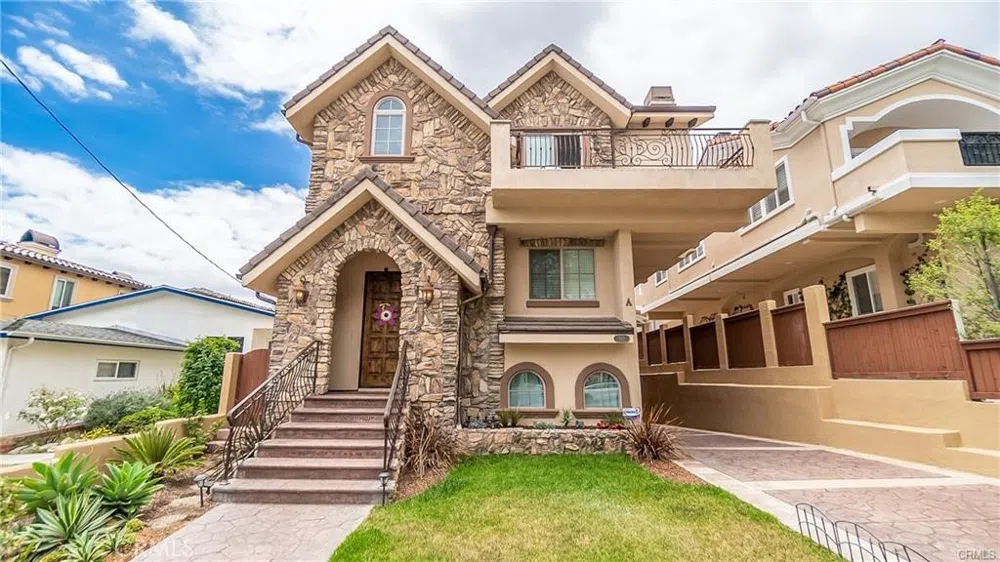 Spacious South Redondo Townhouse! This impeccable, move in ready detached front unit (2 on a lot) situated on a beautiful, tree-lined street is walking distance to Redondo Union High School and Beryl Elementary. Giving the feel of a Single Family home, this 4 BR/5.5 BATH Townhouse offers a reverse floor plan allowing the natural light to shine through the open concept living space throughout the day. With 3130SQFT of living space you will have plenty of space to entertain and work from home. The custom carved wood front door opens to reveal a stunning curved staircase that leads to the upper level featuring vaulted ceilings with an eye-catching designer light fixture hanging in the living room which is open to the gourmet kitchen, dining room and separate office area. The kitchen has granite counters and newer stainless steel appliances (all included) and is centered around a large eat-in kitchen island. Warm up by the fireplace or step onto the balcony to enjoy the west-facing skyline view. The Master Suite is a sanctuary with its own fireplace, soaring ceilings, walk in closet & en suite bath with jetted tub and walk in dual-headed shower. All of the bathrooms and the entryway were designed with Travertine tile. There are 3 main floor Bedrooms that have ceiling fans and recessed lighting while one features a walk-in closet and 3/4 en suite bathroom (2nd Master) , the other 2 have full en suite bathrooms and mirror sliding closet doors. Laundry room with washer/dryer included is also on this floor. The lower level is a large family room, 3/4 bathroom and access to the 2 car attached garage. Gorgeous curb appeal, plenty of storage and the coveted neighborhood and accredited Redondo Unified School District make this a perfect family home!