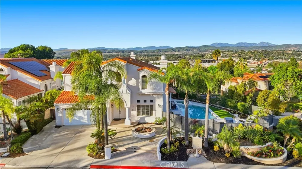 Welcome to 5489 E Suncrest Road in Anaheim Hills, a fully remodeled retreat nestled on a coveted corner lot in a serene gated community. Boasting sweeping views, modern upgrades, and a backyard built for entertaining, this home offers the perfect balance of comfort, style, and Southern California lifestyle. Inside, the layout is spacious and flexible, starting with a formal living room that impresses with soaring ceilings, an abundance of natural light, and a beautiful fireplace that creates a warm and inviting ambiance. Adjacent is a separate formal dining area and a stylish home office, ideal for working remotely or managing day-to-day life with ease. At the back of the home, the kitchen and family room open up to incredible natural light and stunning views. The kitchen features sleek quartz countertops, stainless steel appliances, and ample cabinetry. The seamless flow into the family room makes this an ideal space for hosting guests or simply enjoying a quiet evening at home. Upstairs, the thoughtfully designed floor plan offers versatility and privacy. A completely separate bedroom and full bathroom provide the perfect space for guests or multigenerational living. The primary suite is a true sanctuary with a large walk-in closet, dual sinks, a soaking tub, and a separate shower. Two additional bedrooms each come with their own ensuite bathrooms, making this a rare four-bedroom, five-bathroom home that caters to both comfort and convenience. Step outside and you're greeted by your own private resort—complete with a newer pool and jacuzzi, a built-in BBQ, and a cozy firepit, all surrounded by breathtaking views and low-maintenance landscaping. It’s the ultimate setting for relaxing, entertaining, or soaking in the sunset. Situated in one of Anaheim Hills' most sought-after gated neighborhoods, this home offers easy access to top-rated schools, local parks, and everyday amenities. 5489 E Suncrest Road isn’t just move-in ready—it’s a lifestyle upgrade waiting to happen.
