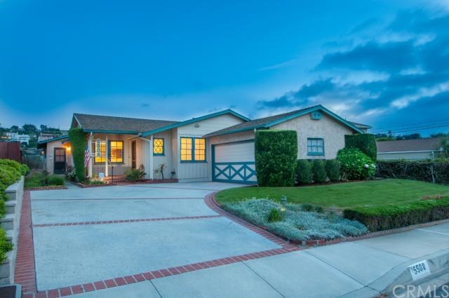 Cul de Sac home on a huge 8,500' lot! Some Harbor views of San Pedro looking south from backyard. Lotline for backyard extends beyond the fence and down the hill. Extended living rm with gas log faux fireplace, 2 skylites and opens to patio & backyard. Large family room has vaulted beam ceilings, Swedish fireplace and opens to patio/yard. Kitchen has tiled counters, lots of cabinet/storage space, sep laundry rm + built-in appliances. Brand new interior paint, brand new carpeting, new linoleum and refinished hardwood floors in two bdrms, hallway & entry. Large master suite has a walk-in closet & a giant bathroom with tiled floors, sunken Roman tiled tub and atrium window. Full bath in hallway + 1/2 bath (powder rm) at entry. Two other bedrooms have refinished oak hardwood floors. SW corner bedroom has direct access to 2 car garage. Very nice patio and backyard with grass lawn, flower beds and PRIVACY! Lotline does extend down hillside beyond the chain link fence. Super quiet street with appx 10 homes on it. 2 minute drive to Richardson middle and South High Schools. 5 minutes to Riviera Village and Riviera Elementary. This might be one of the nicest streets in the entire Riviera!