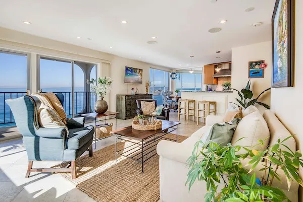 Fully furnished panoramic ocean view and beachfront property with 180 degree balcony view from Palos Verdes to Santa Monica Mountains. Enjoy full ocean views from every window. You can hear the waves from your living room and kitchen. Feel the ocean air! You literally can't get a closer proximity to the ocean. Situated on the third floor of the building, this 862 SF one bedroom condo feels massive when your fourth wall is the great Pacific Ocean. Updated kitchen and bathroom. Covered, secured parking for 1 car. Community Jacuzzi and laundry. Spectacular location in the South Bay. Short walk to the Redondo Beach Pier and The Village restaurants, fish markets & farmer's market. Year-round beach living or your incredible getaway. To Live…Live by the Sea.