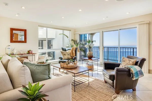 Fully furnished panoramic ocean view and beachfront property with 180 degree balcony view from Palos Verdes to Santa Monica Mountains. Enjoy full ocean views from every window. You can hear the waves from your living room and kitchen. Feel the ocean air! You literally can't get a closer proximity to the ocean. Situated on the third floor of the building, this 862 SF one bedroom condo feels massive when your fourth wall is the great Pacific Ocean. Updated kitchen and bathroom. Covered, secured parking for 1 car. Community Jacuzzi and laundry. Spectacular location in the South Bay. Short walk to the Redondo Beach Pier and The Village restaurants, fish markets & farmer's market. Year-round beach living or your incredible getaway. To Live…Live by the Sea.