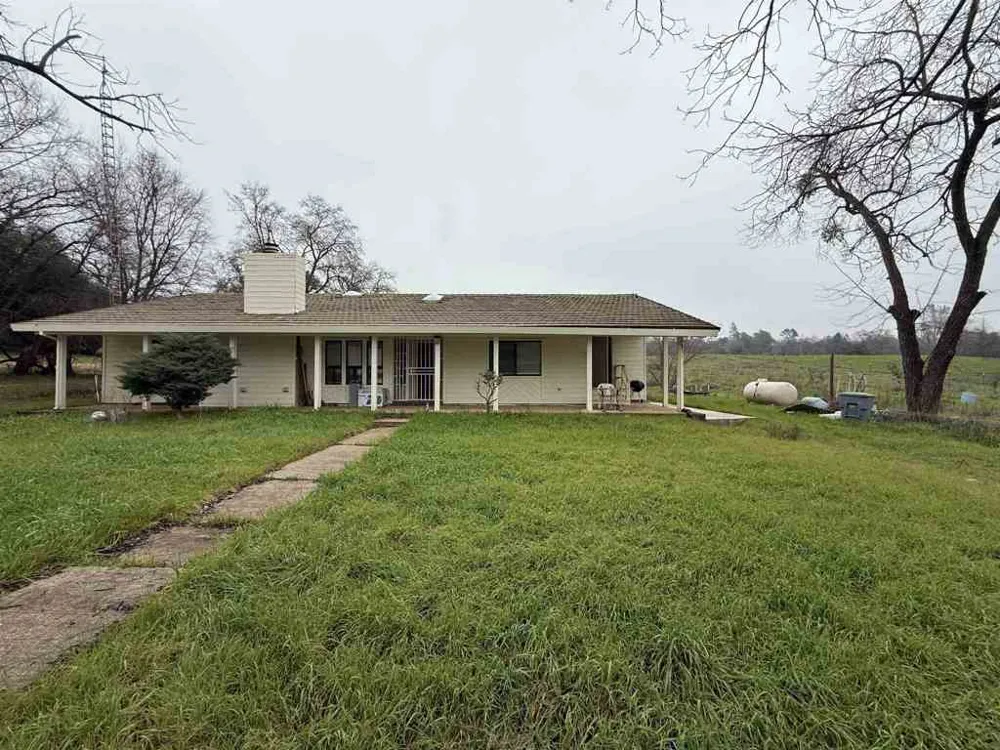Spacious single-story home situated on approximately 6.89 acres of usable land. The property features a functional and well-designed floor plan with a large primary bedroom. Family room flows seamlessly into the open kitchen with breakfast bar, creating an inviting space for daily living and entertaining. The main house, guest house, and oversized detached garage have all been upgraded with 200-amp electrical panels. Main residence is topped with a durable clay tile roof. Approximately 1,800 sq ft detached garage offers excellent flexibility for storage, workshop, or multiple uses. Automatic security gate at the front yard provides added privacy. Ideal for buyers seeking space, comfort, and country living with convenient access to town. Buyer to verify all information.
