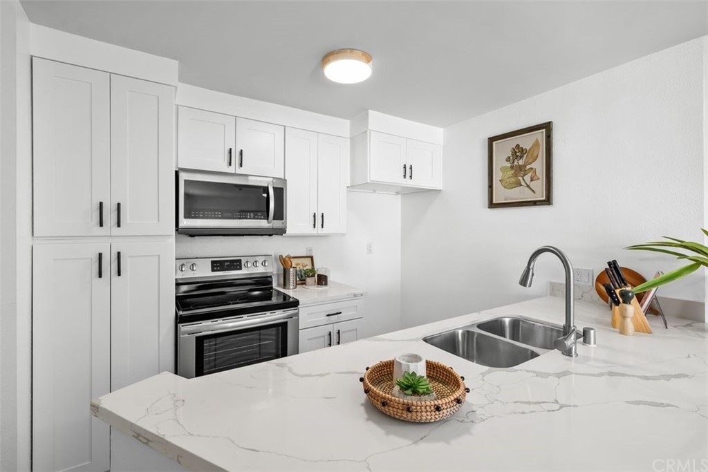 Hello sweeping ocean views & white, bright remodeled kitchen!! This 1 bedroom, 1 bathroom TOP FLOOR unit features a NEWLY REMODELED OPEN CONCEPT KITCHEN with stunning quartz countertops, new cabinets, newer stainless steel appliances: stove, dishwasher, microwave, and countertop seating for day to day eating, fresh paint throughout, smooth ceilings, new light fixtures and brand new carpet, located at a beautiful ocean front community with wonderful amenities. Enjoy a lovely dinner on your large private deck and watch spectacular sunsets or simply relax and take in the fresh ocean breezes throughout your home. One bedroom features spacious walk in closet and sliding doors with access to the balcony. This community is ideally situated just behind the Redondo Beach pier, steps to the beach, and close to Riviera Village where you will find fine dining, cafes, shops and grocery stores. This complex offers many amenities such as a secured and gated complex with an on sight manager, walkways with serene streams that lead to the board walk, a dog walk (pet friendly HOA), low HOA dues $300 per month, elevator, two pools, spas, and a fully equipped ocean club exercise room. You have beach access from your home and just a few minutes from King Harbor Marina. Make this beach condo oasis your home and walk everywhere!