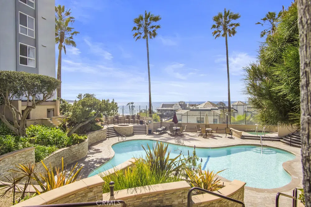 Welcome to The Village in Redondo Beach. From this top floor condo, on your private balcony, you will enjoy the ocean views and breezes. Large living and dining room opens to the private balcony. Both the kitchen and bathroom have been remodeled. The Bedroom has a large walk in closet and balcony access. Amenities include:2 heated pools, spas, fitness center, barbecues to name a few. The community is gated and only a stones throw to the pier, beach and local dining establishments. A must to see.