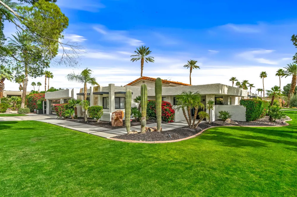 ELEGANT, SIMPLY ELEGANT! Modern Luxury in the Heart of Tamarisk - Rancho Mirage -Located in the highly sought-after Tamarisk area of Rancho Mirage, fabulously positioned between Tamarisk Country Club and Mission Hills Country Club, this extensively remodeled contemporary residence offers refined desert living in one of the most Exclusive Non-Gated communities in the Coachella Valley.Set on a desirable corner lot, this 3-bedroom home, with a bonus room, great for office or den, has been thoughtfully redesigned from top to bottom with a focus on modern architecture, quality craftsmanship, and seamless indoor-outdoor living.The open-concept floor plan is anchored by a stunning contemporary dual kitchen workspace featuring custom cabinetry, oversized island, designer Corian countertops, dual sinks, dual refrigerators, dual dishwashers, premium designer appliances, and a Butler's Pantry, ideal for both everyday living and for entertaining. Note also specialty Italian-designed interior doors, and the dramatic oversized Pivot Entry Door. Large-format designer tile flooring, upgraded baseboards, and custom lighting elevate every space.All 3 bathrooms (2 ensuite) have been fully remodeled with spa-inspired finishes, State-of-the-Art fixtures, and interior glass spa doors. Smart-home upgrades include Nest Climate Control and safety systems, dual air conditioners, and modern digital security and gate systems.The backyard has been transformed with approximately $150,000 in hardscaping and landscaping, creating a private resort-style setting. Enjoy a fully updated pool and spa with specialty lighting, outdoor dining area, outdoor living area, exquisite gas fire pit with seating areas, built-in BBQ and outdoor kitchen. Mature landscaping, automated sprinkler and drip irrigation, mango and citrus trees, and outdoor security lighting complete the experience.You will also find a detached 'sidekick' room by the pool - great for an art studio or extra office with custom cabinetry and mini-fridge. Additional highlights include covered front courtyard with seating, expansive driveway, and a rare triple-car garage with modern glass doors. The exterior has been modernized with updated paint and stonework, reinforcing the home's clean, contemporary aesthetic.Quiet, private, and impeccably upgraded, this home offers a rare opportunity to own a truly turnkey modern residence in one of Rancho Mirage's most desirable locations. This is a MUST SEE!!