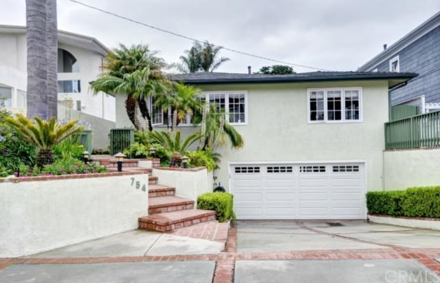 Super Tree Section location...one of the nicest streets in the trees! Dark maple floors (except 2 bdrms), recessed lighting+crown molding t/o.Large bright living rm+dining area has two 12' windows providing lots of natural light.Super sunny front bedroom (was used as den) has 3 closets. Master suite is SE facing (sunny), opens to deck & has a huge walk-in closet + a retiled Roman tub/shower with a glass block atrium for privacy in its' own full bathrm.Upgraded hallway bathrm has tiled tub/shower/floors & new vanity.Laundry rm is adjacent to the hallway bthrm.Kitchen has tiled counters, Kitchenaide Range, Bosch Dishwasher, new hardware on the freshly painted cabinets & is open to the family rm. Fam rm has a shell-stone tiled 2 sided fireplace & opens to trellis covered deck, jacuzzi & yard. This could be a great dining room if so desired. Wonderful South facing deck & grass yard with mature trees and flower beds. The backyard is elevated above the property behind which offers privacy & nice open views. This is a VERY NICE backyard! Both sides are gated. 2 car attached garage. Brand new F/A heater, ducting & thermostat, roof is 7 years old. Close to beach, Sand Dune Park & Downtown MB! This is a fantastic lot in a great location. Shows really well.