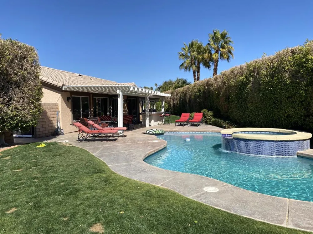 Located close to all the Coachella Valleys festivals, casinos, and major attractions in the exclusive Starlight Estates section of Indian Palms Country Club which features 27 holes of golf, clubhouse with restaurant and bar. This home offers a show stopping back yard with a beach entry pool, spa, BBQ Island, greenbelt, and a basketball court - all with complete privacy. The kitchen looks to the family room with an entertainment center, cozy fireplace, and a view of the pool. It has been remodeled with quartz countertops, stainless appliances, and cabinets. This is one of a kind.