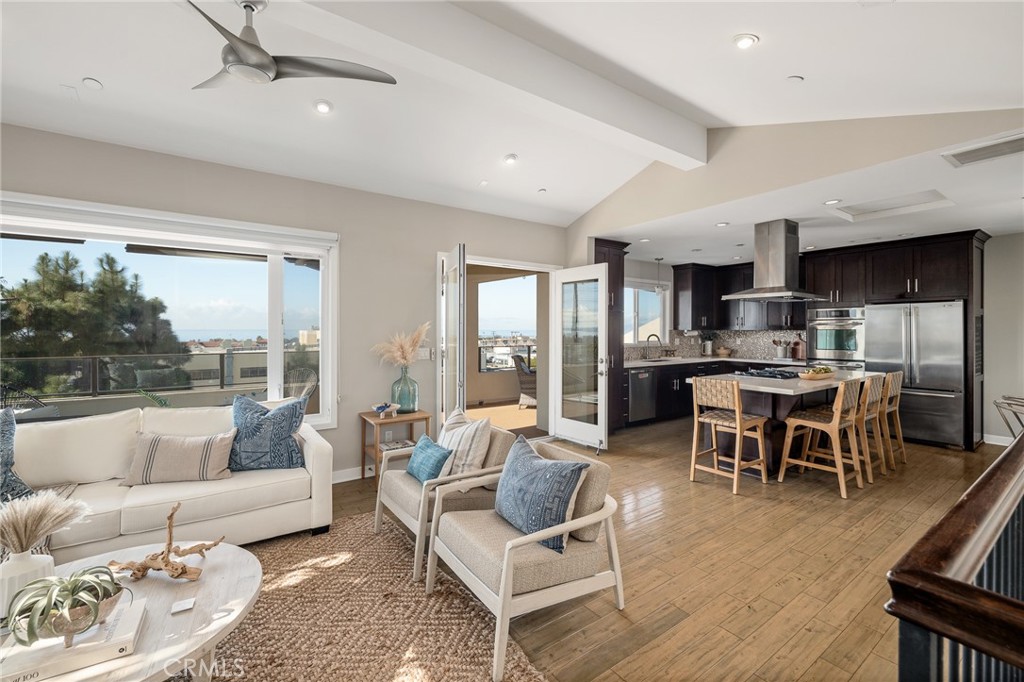 Enjoy panoramic ocean views of Catalina, PV, and Malibu from this gorgeous southwest facing townhome nestled in the Hermosa Beach hills. This contemporary home features 3 spacious bedrooms located on the same level with the laundry closet and guest bathroom. The generous primary en-suite features a walk-in closet, separate soaker tub and shower, double vanity sinks and more ocean views. The entire top floor showcases the living level with French doors that open up to an oversized balcony directly off the living room and kitchen area. Imagine cooking meals and entertaining in your home while watching the sunsets each night! The kitchen boasts rich cherry cabinets, Caeserstone counters, stainless steel appliances and a breakfast bar seating that gazes out to the ocean plus adjacent dining area. Other features include air conditioning, tankless water heater, and an attached 2 car garage. This location is prime for enjoying the South Bay beach lifestyle with minutes to shopping, dining, the greenbelt, award winning schools, world class beaches and downtown Hermosa Beach and Pier Ave.